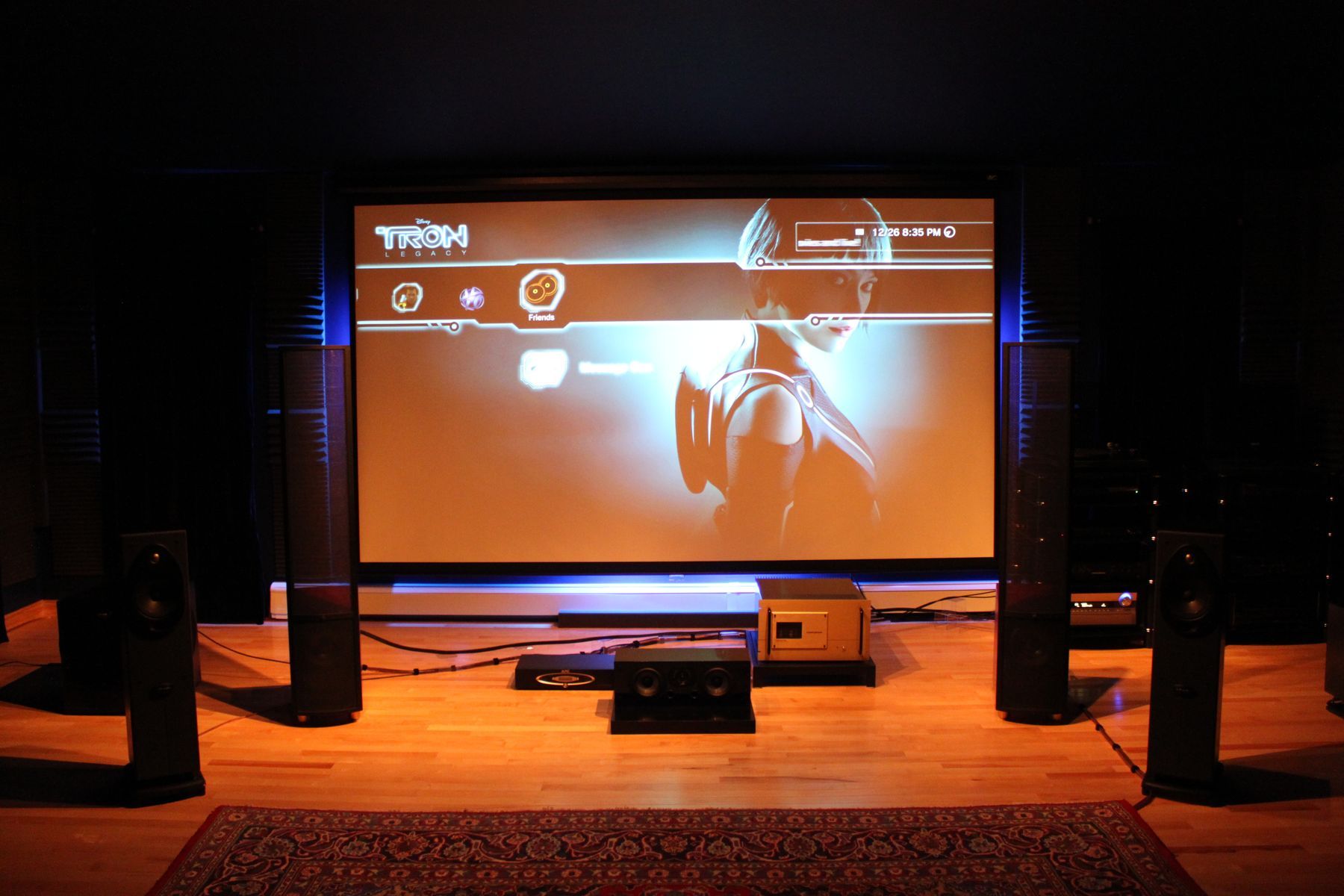 The above pictures still shows my old Martin Logan speakers. Look at the end of this gallery to see the new Magnepan 20.1's. Equipment: Speakers: Magnepan MG 20.1 Cherrywood and Black. Custom stands are very thick steel with cement and epoxy filling and coated with rubber. Crossover capacitors (35) replaced with Z capacitor (eliminating all 35 connections with point to point Jenna labs wire with cardas silver solder in the entire circuit). Fuses directly bypassed. Speaker stands on custom speaker feet marble stands. Signal Cable Ultra Bi-Wire Speaker Cables with spade terminations Custom interconnect cables w/ locking RCA plugs and Belden LC-1 cable Polk Audio RT600's (x4) Polk Audio RT450's (x2) Polk Audio LSiC Center Speaker Hsu Research VTF-15H with rosenut veneer Subwoofer Pre/Amp/Receiver/Processor: Conrad Johnson Evollution 2000 Amplifier (Mods: Universal power cable connect added) Conrad Johnson PV-12 Preamplifier Conrad Johnson D/A-2b Vacuum-Tube Digital Processor (Tice Power Cord upgrade and optional ST fiber connector) Jolida JD9 phono preamp (Mods: JJ Tesla 12AX7 matched tubes, Obbligato Premium Film 1.0uF 630V caps, OPA637AP opamps, Sound Damping Sheet applied to interior) Onkyo TX-SR875 Receiver SONY SDP-E800 (used as AC-3 RF Demodulator for Laserdisc player) Players: Rega Planar 3 Turntable (Rega RB300 Tonearm. Dynavector 10X5 cartridge. Monster RCA connector upgrades.) Oppo Digital DV-980H SACD/DVD player Oppo Digital DV-970H SACD/DVD player Sony Playstation 3 Sony BDP-S350 Blu-ray player Pioneer Elite CLD-97 Laserdisc Player (with AC3 output mod and DNR Auto-off mod) Pioneer Elite CLD-97 Laserdisc Player (with AC3 output mod), backup player Pioneer CLD-D504 Laserdisc Player, 2nd backup player Panasonic PV-9450 4-Head Hi-Fi VCR Aiwa XC-30m 5 disc CD Player Sony cdp-215 Cd Player Sony TC-WE305 Dual Cassette Deck Projection: Epson PowerLite Home Cinema 8700UB Projector Elite Screens - Home Cinema - 150" Diag. Projector Screen Power: AVS Voltage Regulator APC H15BLK AV 1.5kVA H Type Power Conditioner Shunyata Research Inc. Powersnakes (x2), Venon PowerCable replacement powercords. Media Server (Computer, over 17,000 audio tracks): ASUS Xonar D2/PM Sound Card Winamp media player w/ iZotope OzoneMP - DSP plugin Room/Furniture: Walker Edison Everest Multilevel Component Stand (x2) The room is approximately 24 x 23 feet with vaulted ceilings and approximately 150 12"x12" sound proofing panels and additional corner base traps to minimize perpendicular surfaces and distortion. Acrylic speaker cable risers Custom marble dampening coasters updated: 12/3/13 Uploaded Dec 28, 2011 17:25:25