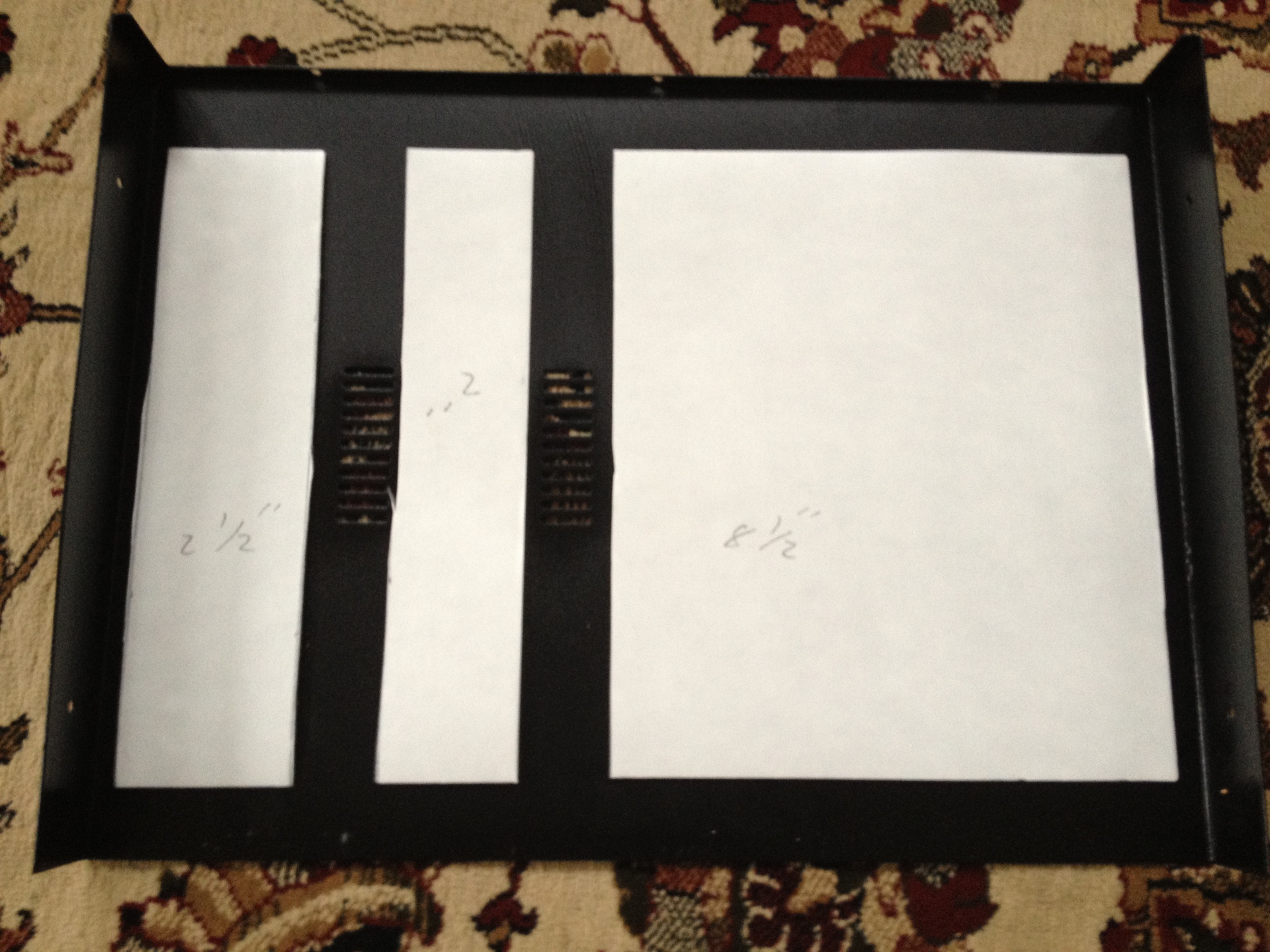 This is for the top cover of the unit. I marked the widths (in inches) for the three pieces. Uploaded Mar 14, 2012 16:43:56