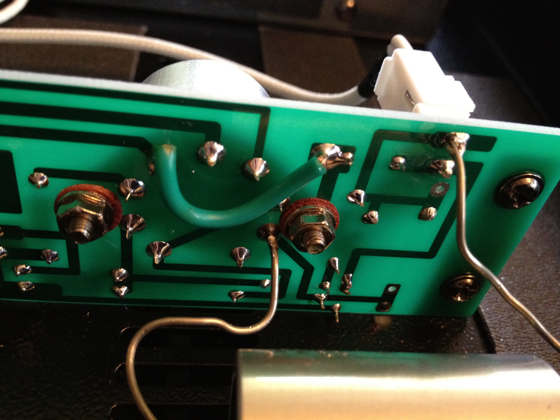 The first one soldered on to the board. I added a little solder to the end of the contacts prior to attaching and this made it really easy to attach it without the worry of solder dripping down and making connections with nearby circuits. Uploaded Mar 14, 2012 17:13:44