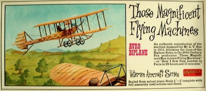 The aircraft re-created for Those Magnificent Men in their Flying Machines were authentic reproductions of 1910 originals. The whimsically designed aeroplanes were shown for the first time on the screen in this film which has, as its highpoint, an International Air Race across the English Channel from London to Paris. They were constructed from original drawings dug out of air archives in London and Paris. To insure their authenticity, Elmo Williams, head of European production for 20th-Fox, called in, as aeronautical adviser, Air Commodore Allen Wheeler, a trustee of the Shuttle-worth Collection at Biggleswade and a war-time pilot. In one detail, the reproductions do vary from the originals. Because there wasn't a motor manufacturer in the world who could find the jigs and machines to turn out exact duplicates of the 54-year-old engines, the small planes are powered by Volkswagon engines, the larger by Rolls Royce motors. They actually were no more powerful than the hand-made motors of the early models, but undoubtedly they were more dependable.