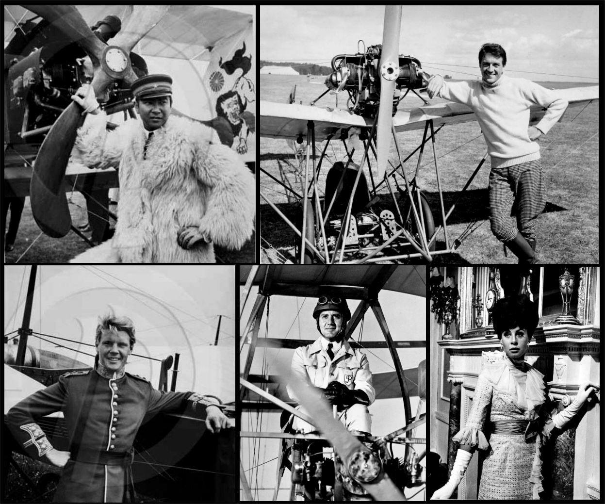 The film is set in an exciting and colorful era which was faithfully recreated through the skill of production designer Tom Morahan and the costumes of artist-designer Osbert Lancaster. Sharing top-billing with the film's stars, in a sense, are the planes themselves. Exactingly duplicated to the most minute detail are such antique aircraft oddities as the Demoiselle, Antoinette, Bristol Box-Kite, Avro Triplane, Eardley-Billings biplane and a Bleriot of the type which was the first plane to fly the English Channel. There are more of equally strange name and design, and they were all captured by the pen of Ronald Searle, the famous cartoonist who created titles for Those Magnificent Men in their Flying Machines.